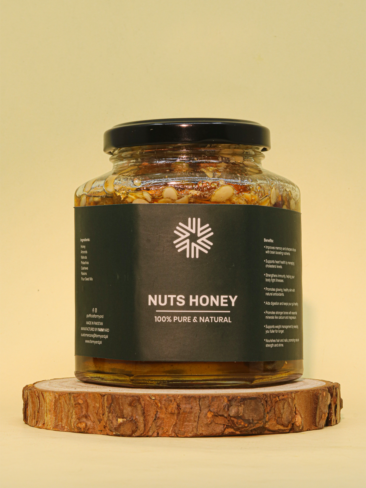 Nuts Honey is rich in antioxidants, healthy fats, fiber, vitamins, and minerals. Regular consumption can help boost your immune system, provide sustained energy, support heart health, improve cognitive function, and contribute to overall well-being. Honey itself also offers natural antibacterial and anti-inflammatory properties.